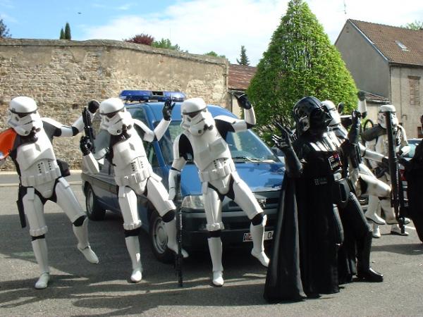 Les Gendrames se deguisent en Dark vador et quelques Soldats de Troop imperiale pour que les automobilistes fans de star wars soient en infraction au code de la route et qu'ils puissent se distraires en de bonne compagnie...