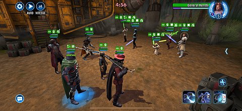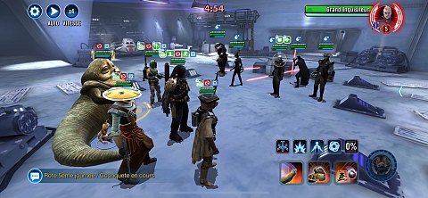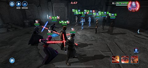 Ne ratez pas la cible (essayez d’infliger un malus d’esquive 80 fois – 18 GAC) : les personnages les plus efficaces seront Amylin Oldo (capacité « Destruction totale »), Bastilla déchue (capacité « Peur »), Cal Kestis (capacité « pas si vite ») et Zam Wessel (capacité « électro lunettes »), ces capacités visant tout le groupe adverse.