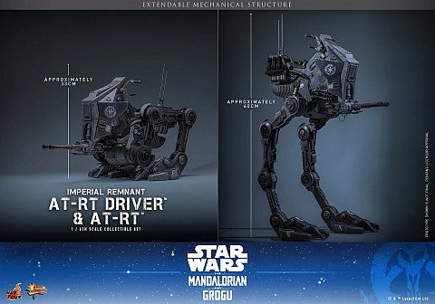 Hot Toys accompagne ce véhicule d’un pilote AT-RT, nouvelle déclinaison des shore troopers version environnements extrêmes. Il sera équipé d'un DLT-20A ainsi qu’un SE-14r. Un socle à effet enneigé est également fourni pour compléter la présentation.