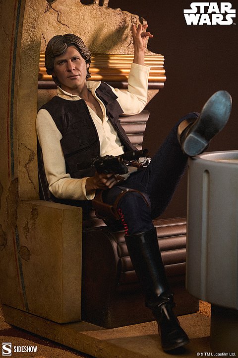 Il faut croire que Han Solo a le vent en poupe ces derniers temps du côté des fabricants. Après que Hot Toys nous ait dévoilé une superbe figurine 1/4 du contrebandier, c'est au tour de Sideshow de proposer sa version à la même échelle mais en résine cette fois.