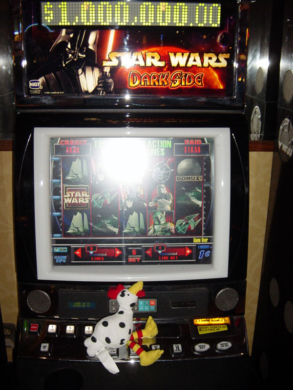 "Ma femme et moi, étions à Las Vegas. Nous nous sommes approchés d'une machine inhabituelle : un Bandit Manchot Starwars Dark Side.