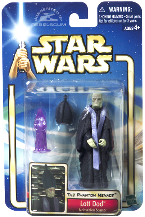 Et Lott Dod, le sénateur Neimodien que l'on peut apercevoir dans La Menace Fantôme et qui dispose d'une grande influence au Séant et il est aussi un des grands investigateurs du blocus sur Naboo. Il est ici accompagné d'un holgramme de SIdious. Cliquez ici pour la voir.