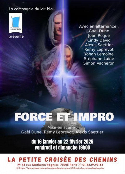 Ce spectacle d'improvisation théâtrale de type long-form dure environ 1h. Les acteurs·ices improviseront une histoire en jouant des personnages créés de toute pièces, grâce à l'aide du public. Il n'est pas nécessaire d'avoir vu Star Wars ou ses dérivés pour assister à la pièce. La compagnie du lait bleu joue du 18 janvier au 22 février 2026 au théâtre La Petite Croisée des Chemins à Paris. Vous pouvez dès maintenant prendre vos places sur le site Billet Reduc !