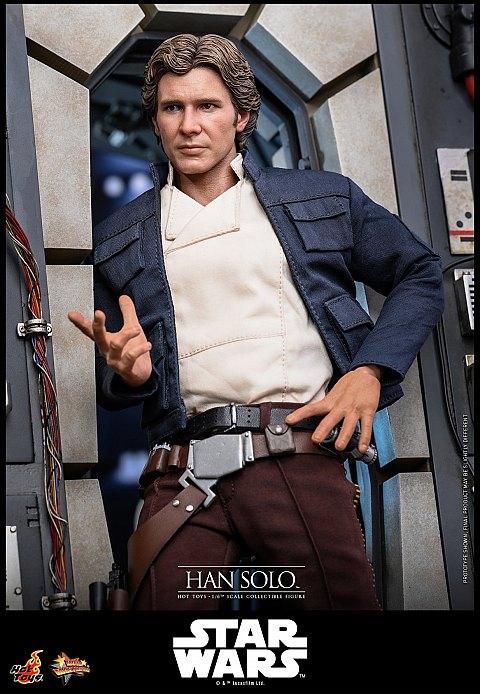 Le célèbre contrebandier a le droit à un superbe headsculpt reprenant très bien les traits de Harrison Ford. Les yeux pourront également pivoter pour changer son regard. Côté accessoires il sera équipé de son manteau porté sur Hoth, de son blaster et de sa paire de lunettes et d'un chalumeau pour réparer le Faucon Millenium.