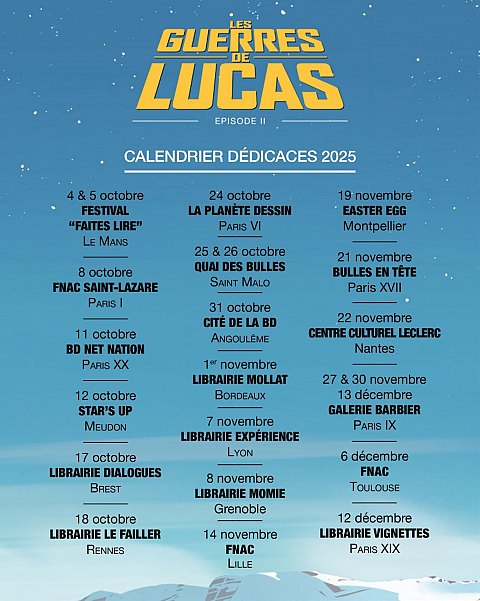 Les Guerres de Lucas – Tome 2 : une tournée de dédicaces annoncée